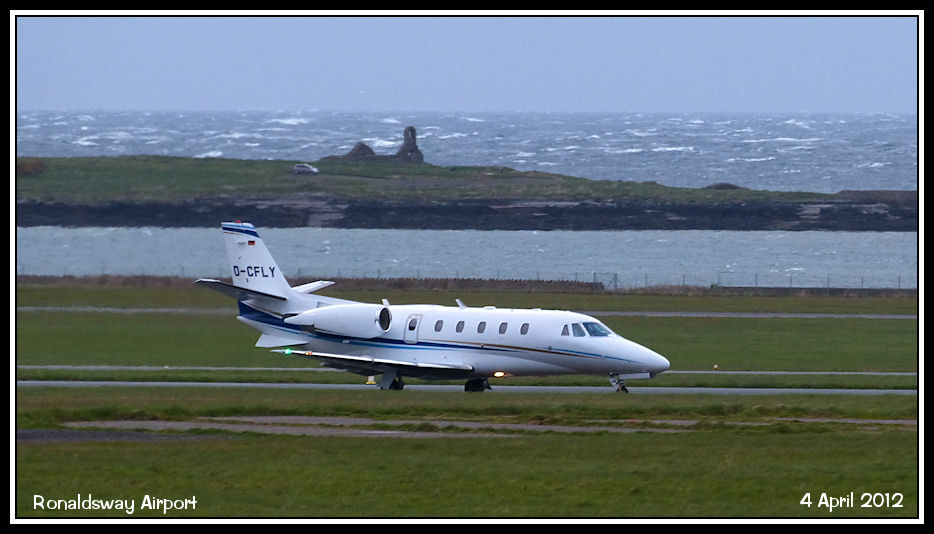 Air Hamburg Cessna Citation XLS D-CFLY taxies for departure after a short stop at Ronaldsway