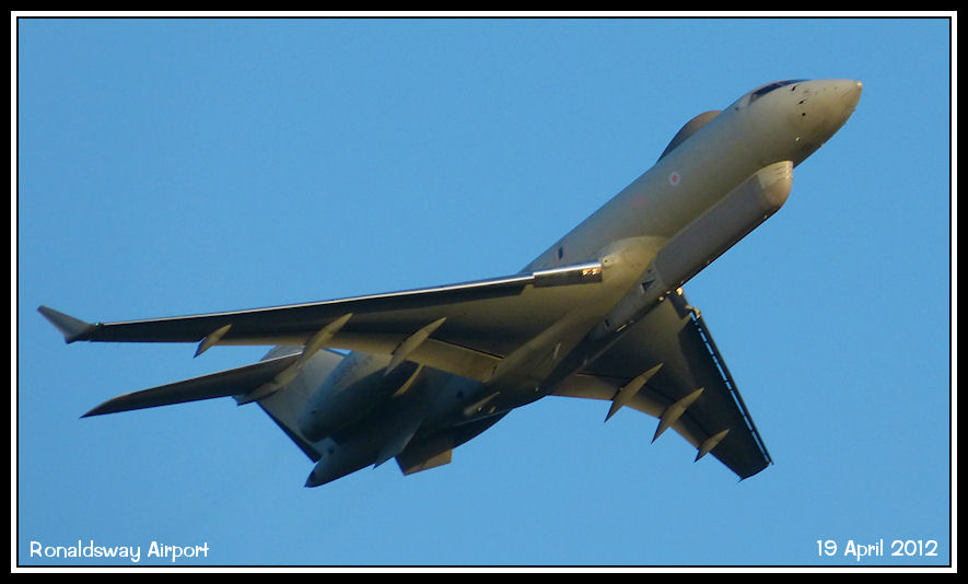 After a final ILS approach to runway 26, Sentinel R1 ZJ694 climbs away to depart back to Waddington