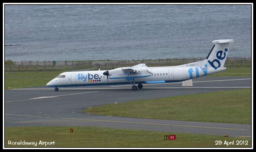 FlyBe Dash8-Q400 G-JEDV turns around for a departure from runway 03