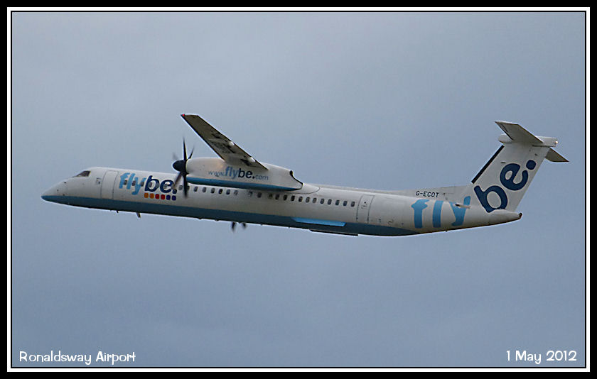FlyBe Dash8-Q400 G-ECOT climbs away after departing from runway 03
