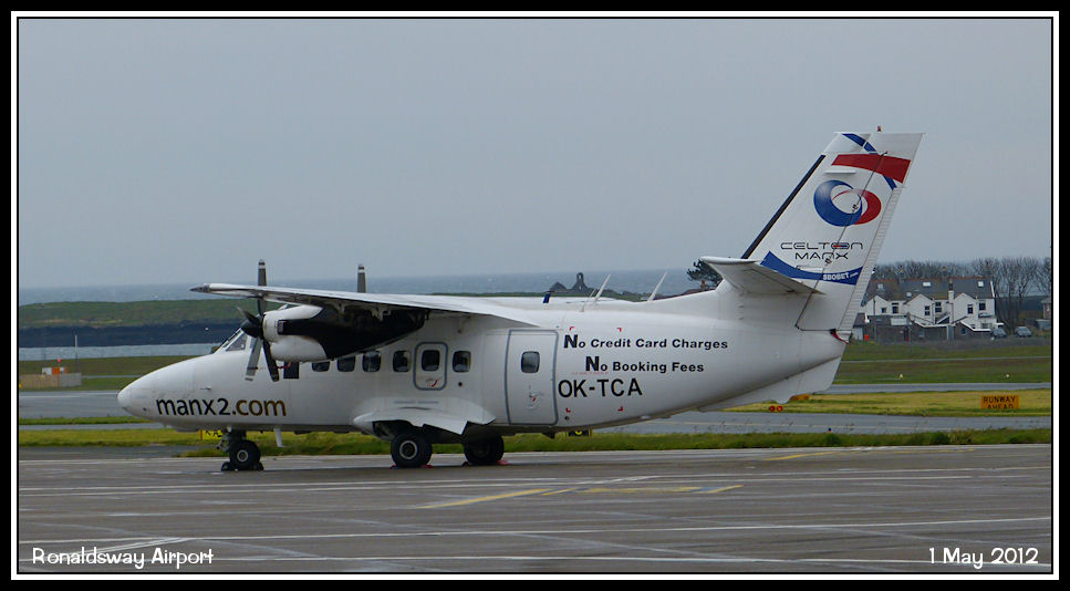 Advertising a refreshing credit card policy, Manx2.com Let 410 OK-TCA parked on stand 1