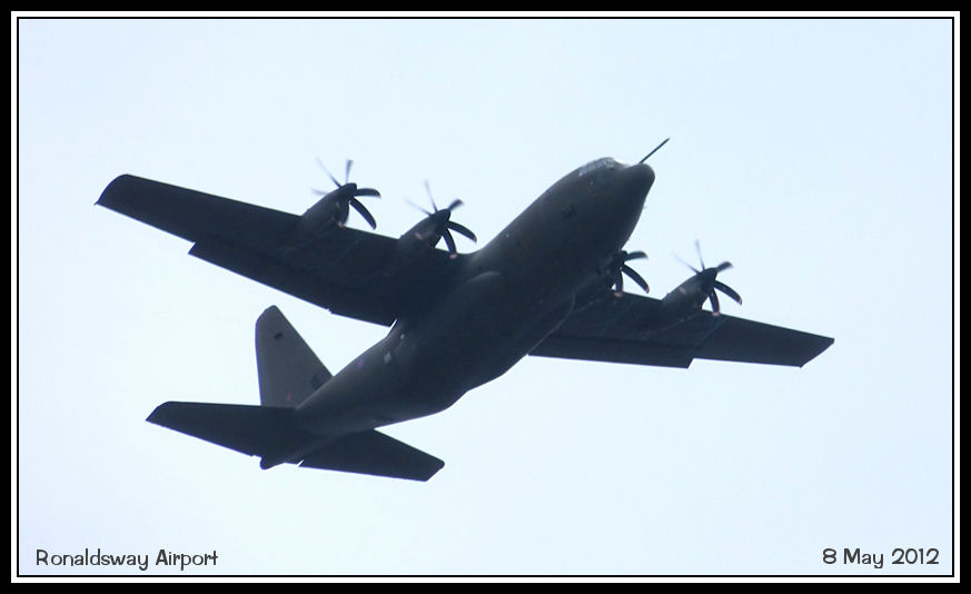 RAF C130J Hercules ZH885 climbs away after a practice ILS aproach