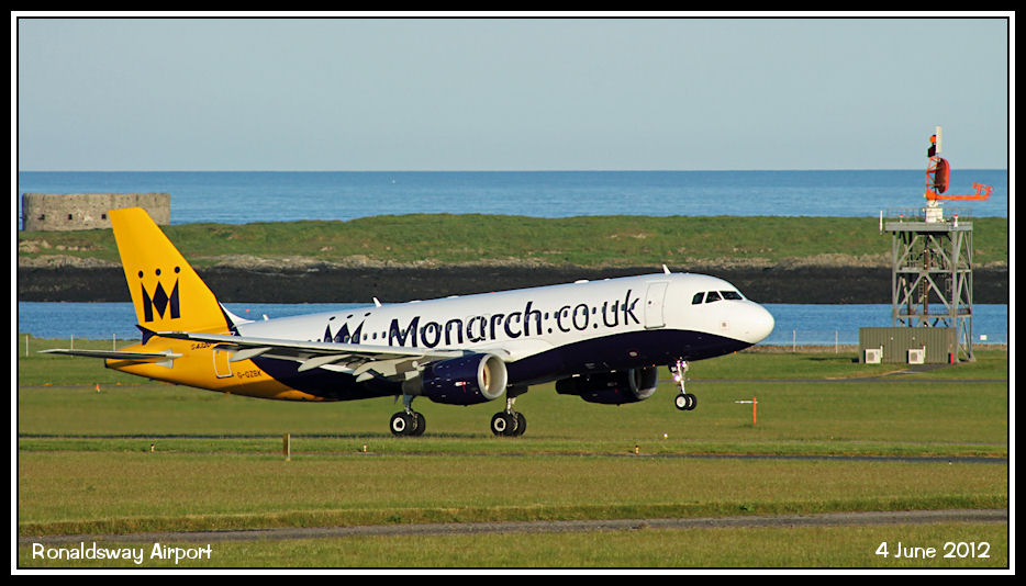 Monarch Airbus A320 G-OZBK lifts off from runway 26