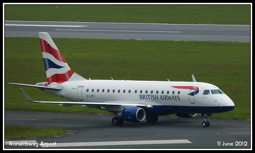 Operating the revived London City route, BA Cityflyer ERJ170 G-LCYI taxies in