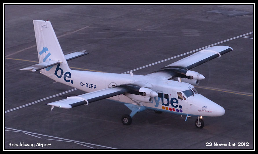 Loganair Twin Otter G-BZFP arrives on stand from Glasgow with engineers to fix an unservicable Saab 340