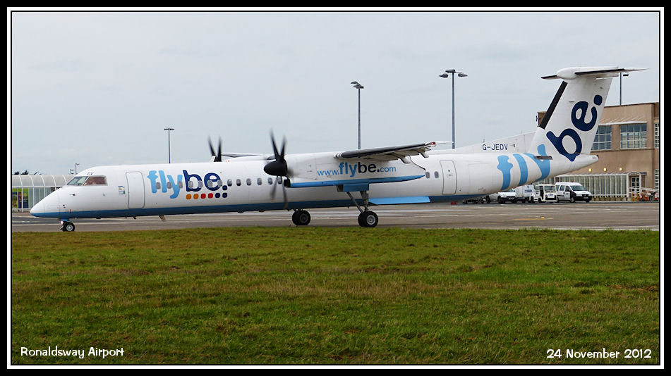 FlyBe Dash8-Q400 G-JEDV taxies from the east apron