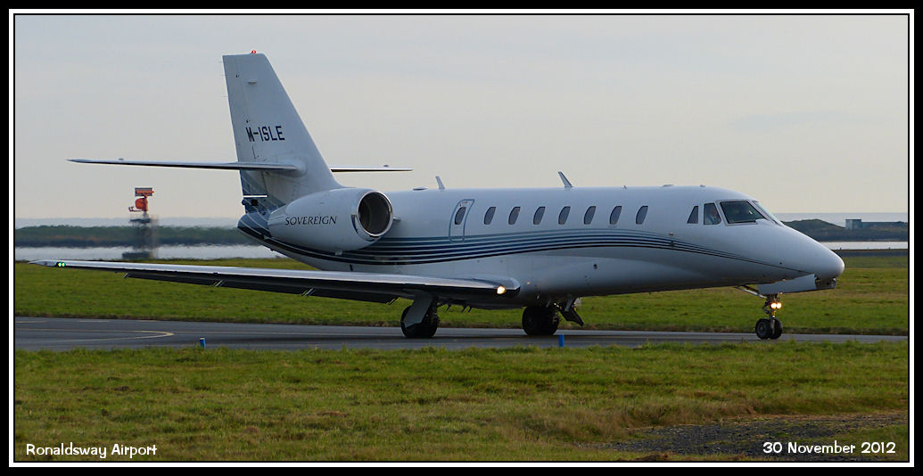 Ronaldsway based Citation Sovereign M-ISLE taxies for departure