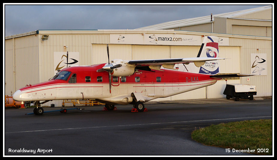 FLM Aviation Dornier 228 D-ILKA, until recently flying for Manx2.com, parked outside their hanger