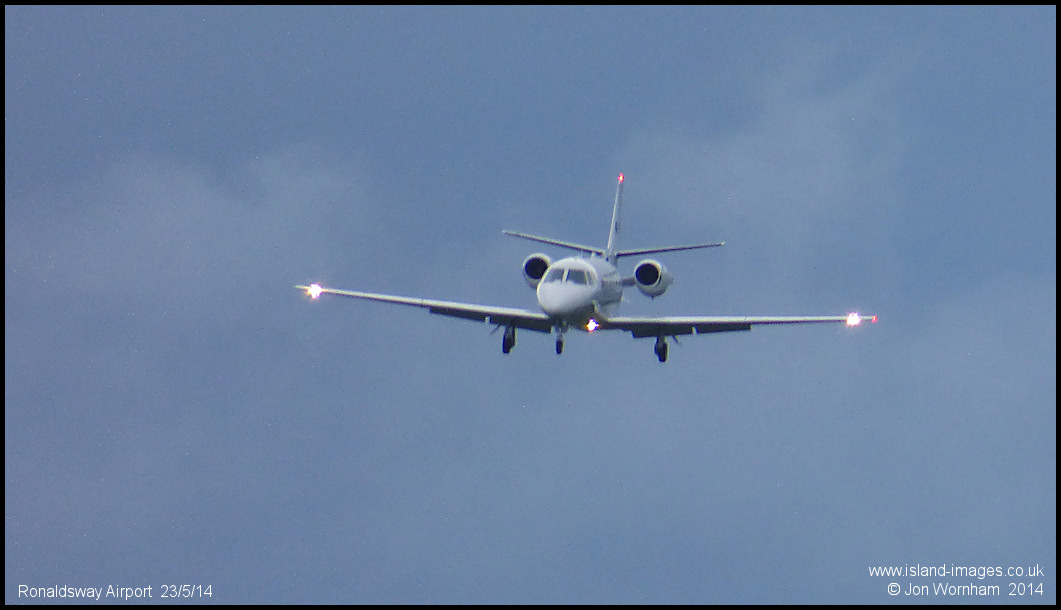 Citation XLS G-OJER on final appoach to runway 08 at Ronaldsway