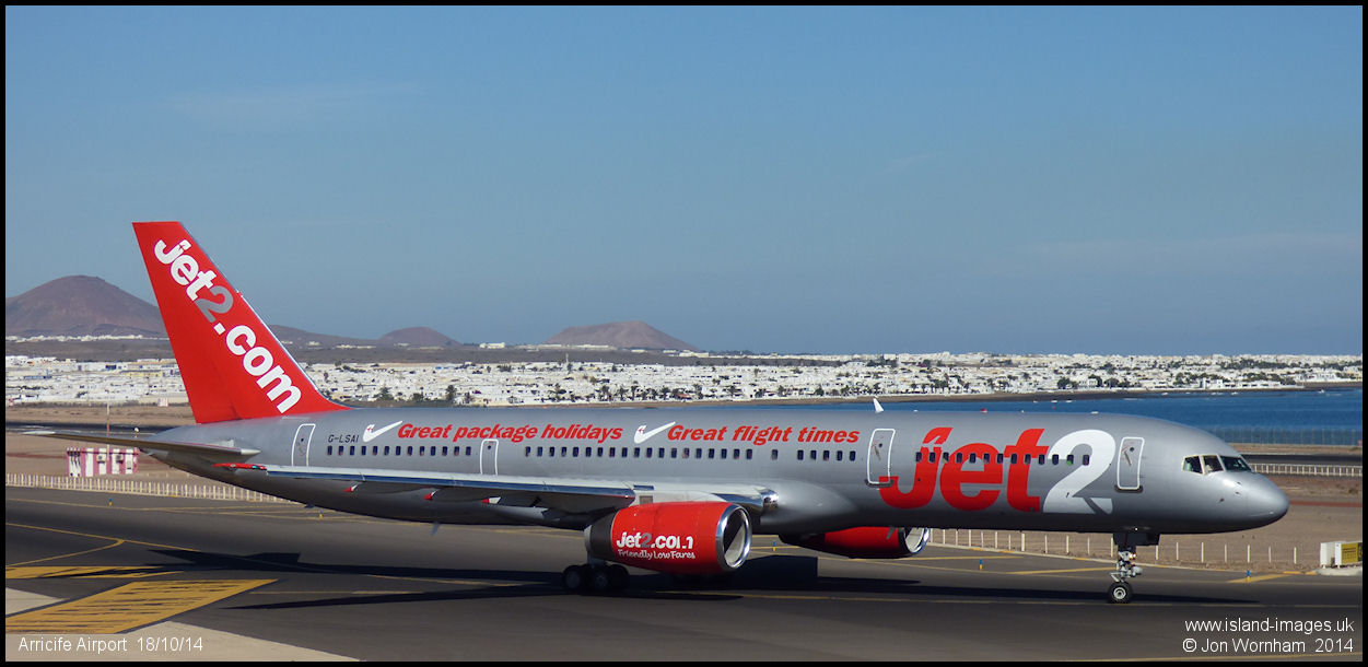 Jet2.com Boeing 757 G-LSAI at the holding point for runway 03 at Arrecife