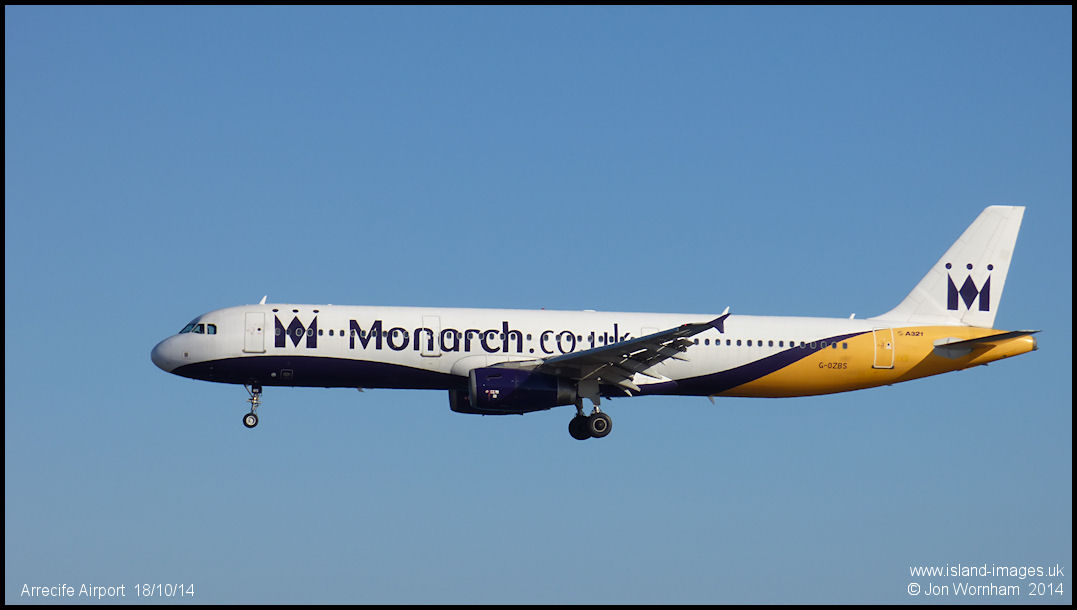 Monarch Airbus A321 G-OZBS on final for runway 03 at Arrecife