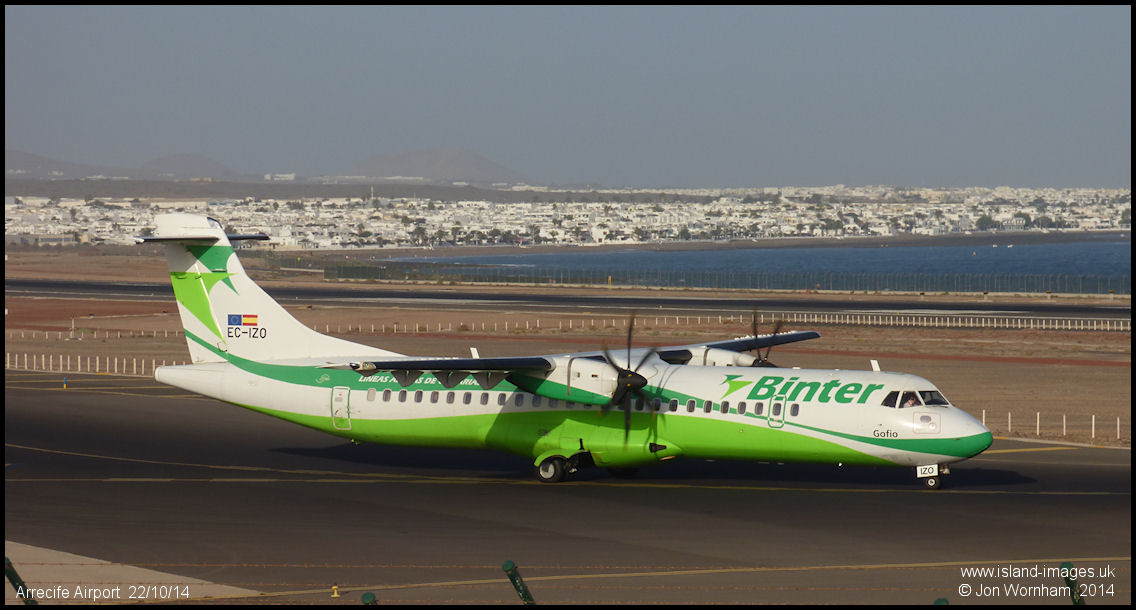 Binter ATR72-500 EC-IZO approaches the holding point for runway 03 at Arrecife
