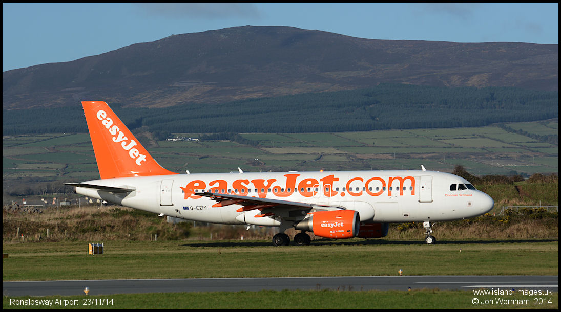 EasyJet Airbus A319 G-EZIY 'Discover Scotland' taxies for departure to Liverpool