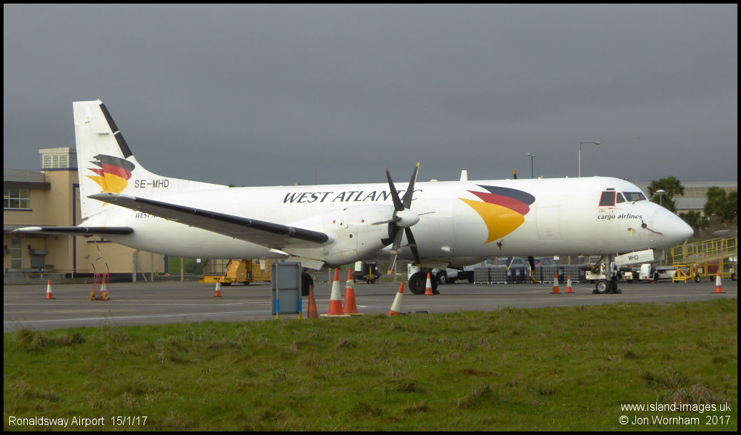 West Atlantic ATP-F SE-MHD parked on the east apron on a Sunday morning. This aircraft operated with Manx Airlines in the 1990s as G-BUUP and G-MANU