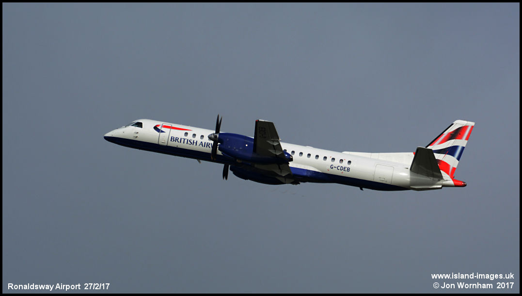 Eastern Airways Saab 2000 G-CDEB climbs away from runway 26 with a BA Cityflyer service to London City Airport