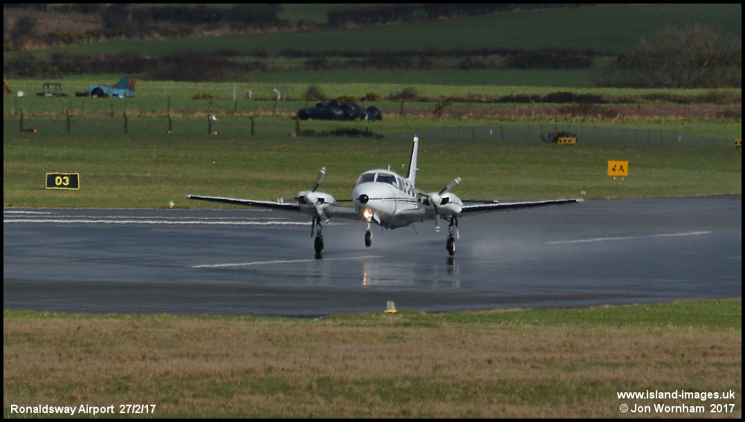 The Isle of Man air ambulance, Piper Navajo G-VIVP taking off from runway 21 at Ronaldsway, most likely for another trip to Liverpool.