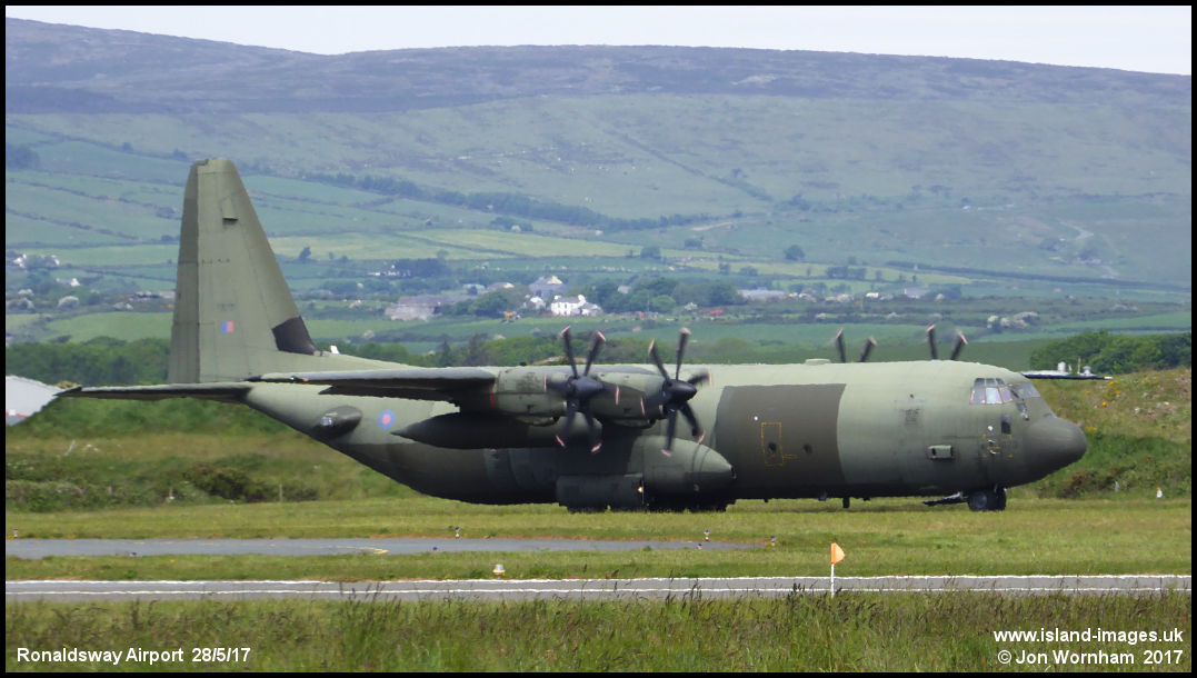 RAF Hercules C4 ZH873 taxies for departure after a night stop at Ronaldsway