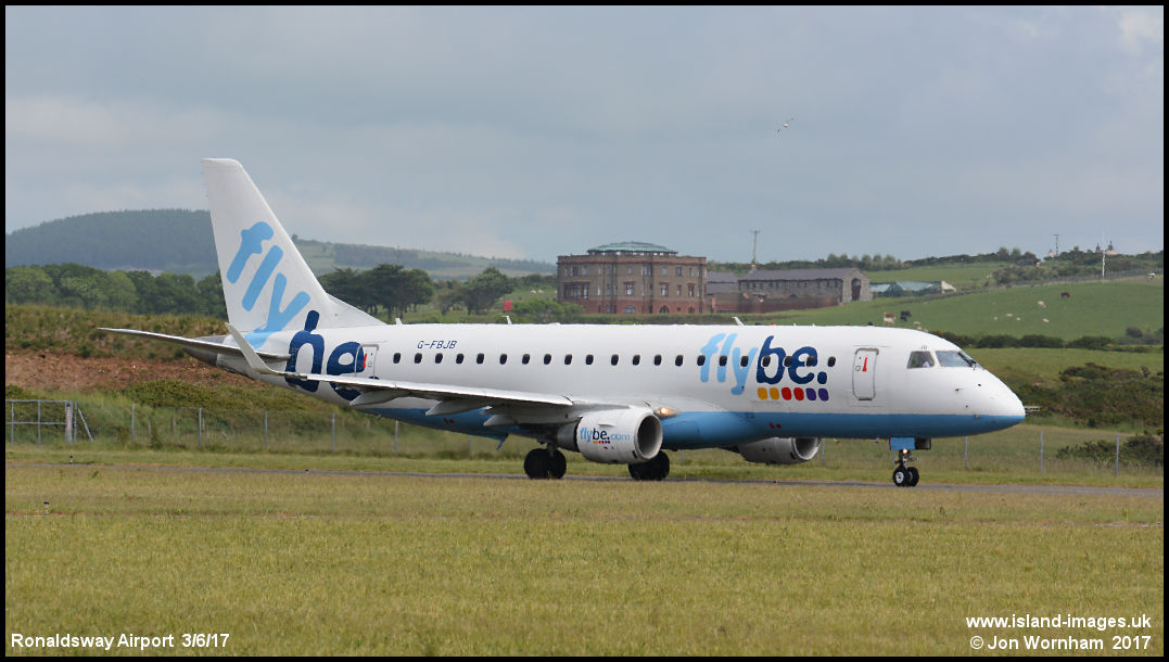 FlyBe Embraer ERJ175 G-FBJB about to line up on runway 26 before departing to Birmingham