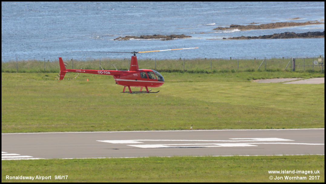 Robinson R44 Raven OO-TOA in a low hover over the threshold of runway 26