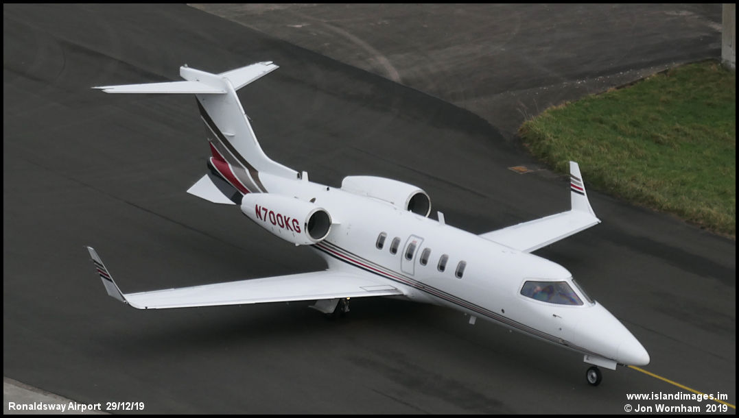 Ronaldsway based Learjet 45 N700KG taxies for departure.