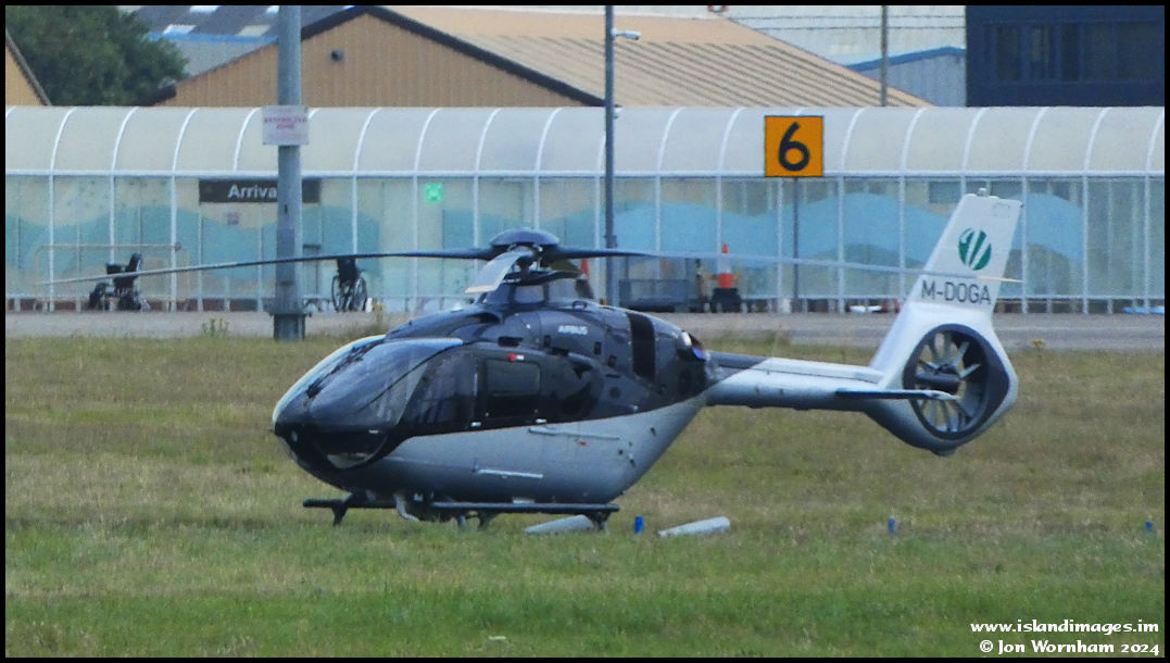 Island based Airbus Helicopters EC135 M-DOGA, parked in 'Area Victor'.