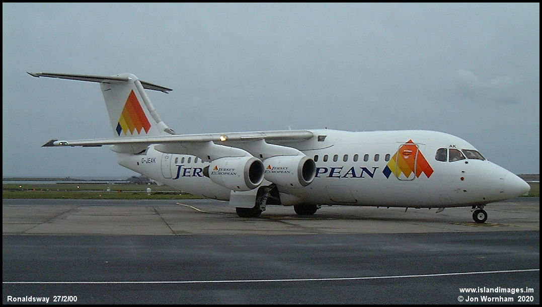 BAE 146-200 G-JEAK, operated by Jersey European and FlyBe from 1993 until 2007. From 2016 it has been a fire fighting water bomber in the USA with Neptune Aviation Services as