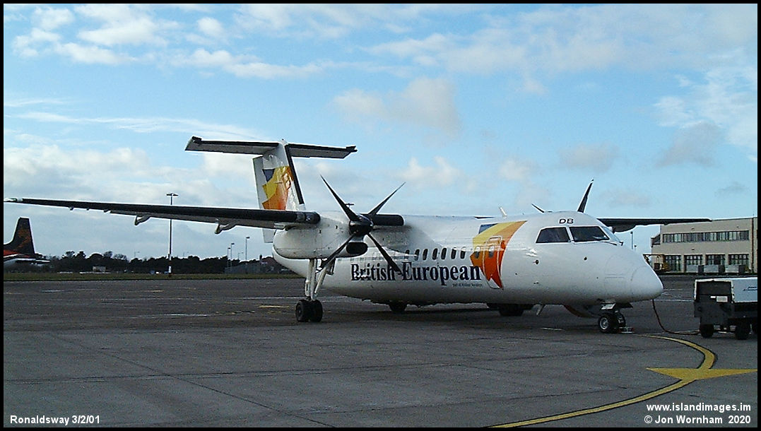 This is the second non-new (ex Tyrolean) Dash8 with Jersey European, G-JEDB. Repainted into British European colours here. In 2003 to BahamasAir as