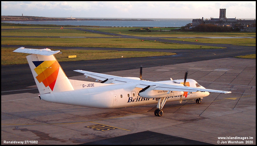 Dash8 Q300 G-JEDE again, now repainted into British Euopean scheme and probably operating an afternoon London City - Isle of Man - Belfast service.