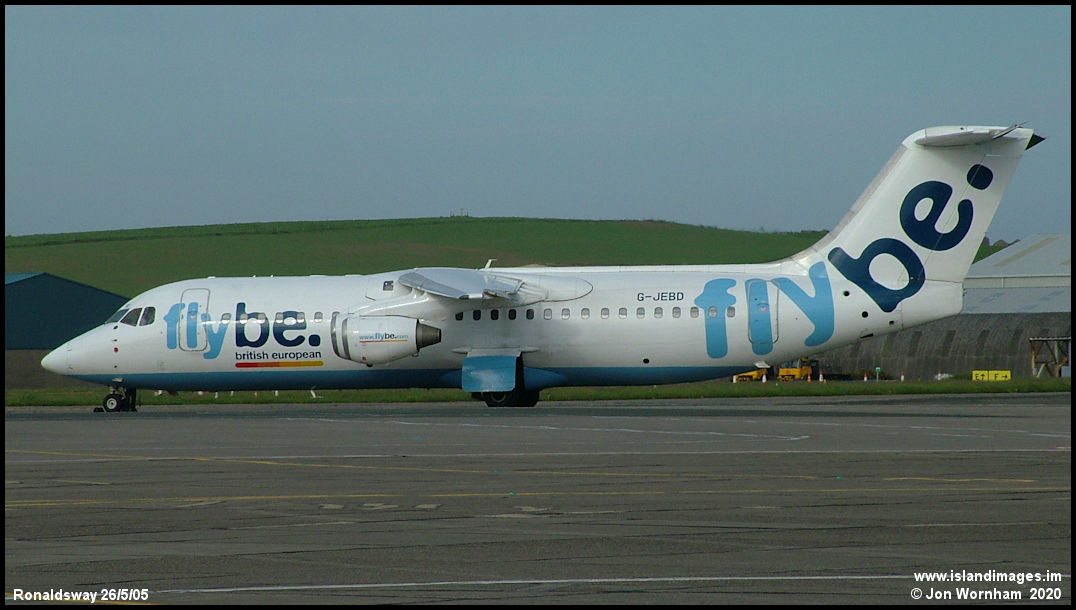 146-300 G-JEBD shows its length off parked unusually on the east apron freight stands. This aircraft was originally with Thai Airways, then Jersey/FlyBe from 1998 to 2008, being sold to Air Libya as