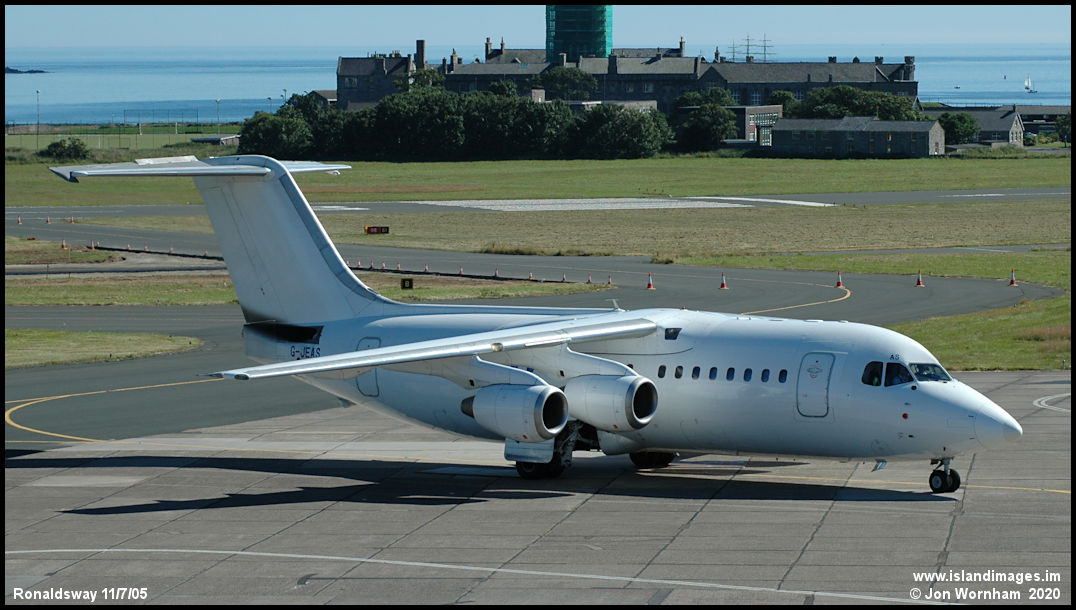 A rather anonymous 146-200 G-JEAS with no markings apart from the registration. Probably pressed into service between being in Air France and FlyBe colours. Withdrawn from use in 2010 and broken up at Exeter.