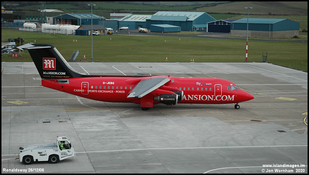The previously rather nondescript G-BVCE, now looking very smart re-registered as G-JEBG and painted in this red livery to advertise Mansion Casinos.