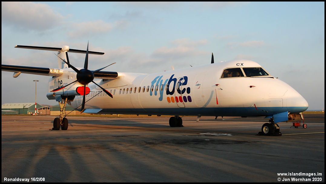 An late afternoon apron level close-up of Q400 G-JECX. Delivered in April 2007 and still in the fleet in 2020.