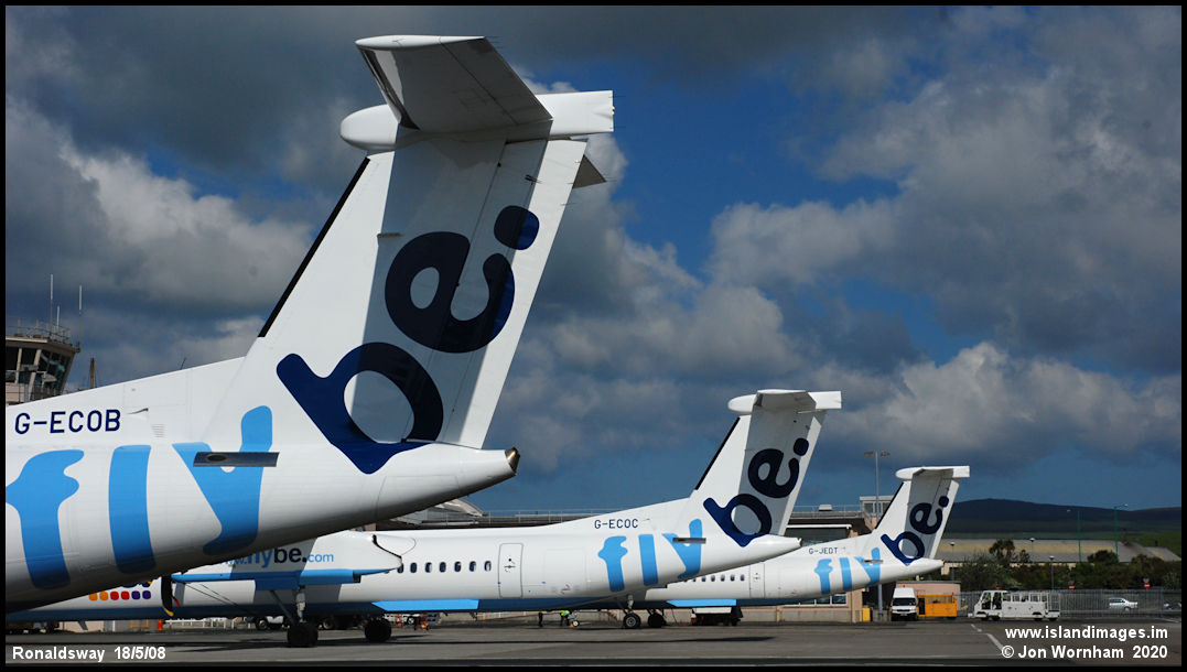 FlyBe had a thriving base at Ronaldsway settling down with three Q400s and crews based on the island. Here's three tails to illustrate it! G-ECOB, G-ECOC and G-JEDT.