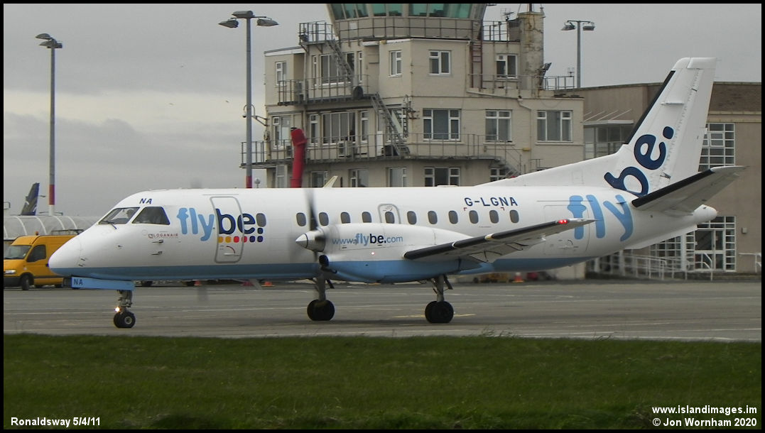 Loganair Saab 340B G-LGNA taxies for departure from the east apron.