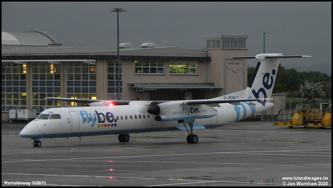 Q400 G-JEDM about to taxy on a very gloomy September day. Despite this being an early Q400 for FlyBe, delivered in July 2003, it was still in the operational fleet in 2020 and the oldest airframe still with the airline, at 17 years old.