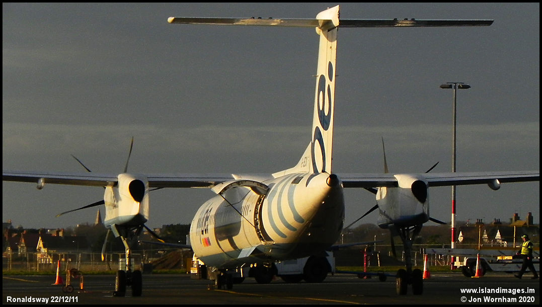 An unusual angle on one of FlyBe's Q400s with the rear baggage door open.