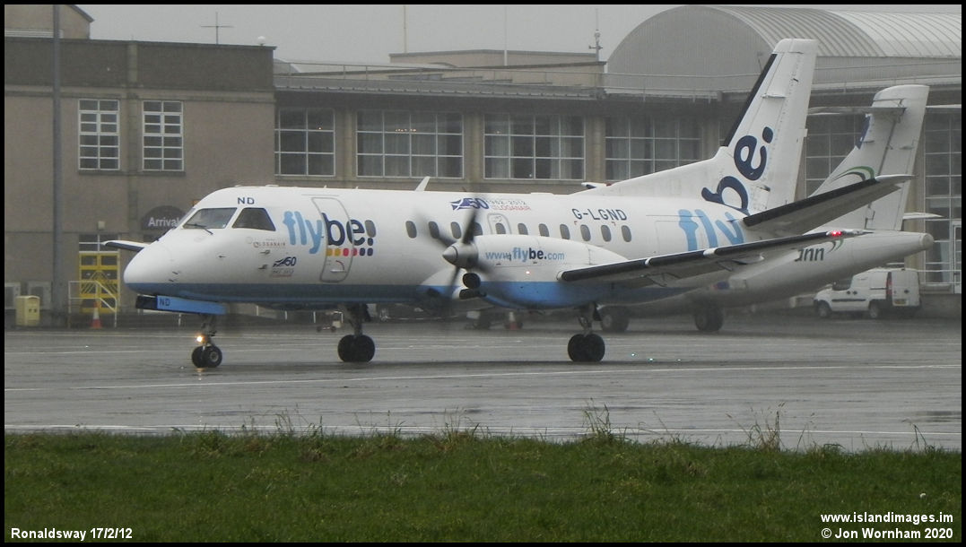 Loganair Saab 340B G-LGND taxies out, carrying 50th Anniversary titles.