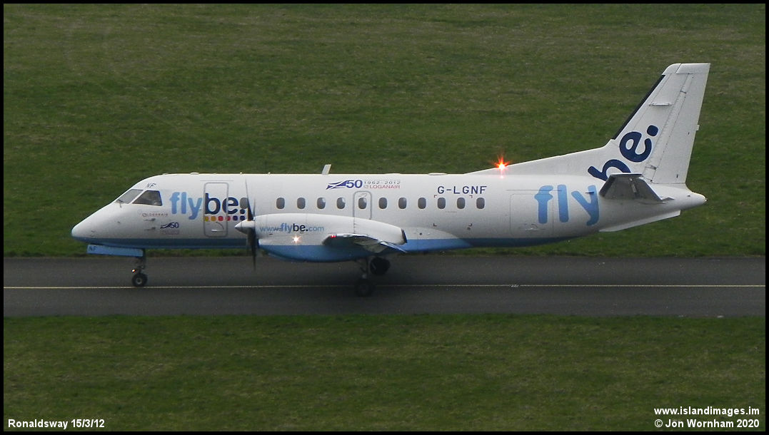 Loganair Saab 340B G-LGNF, showing the 50th anniversary titles.
