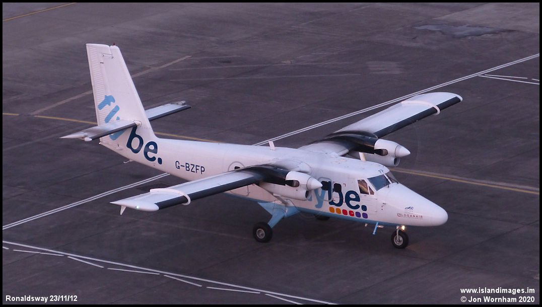 Loganair Twin Otter G-BZFP visits again in November 2012, not on a passenger service, but bringing a spare part and engineers for fix an unserviceable Saab 340.