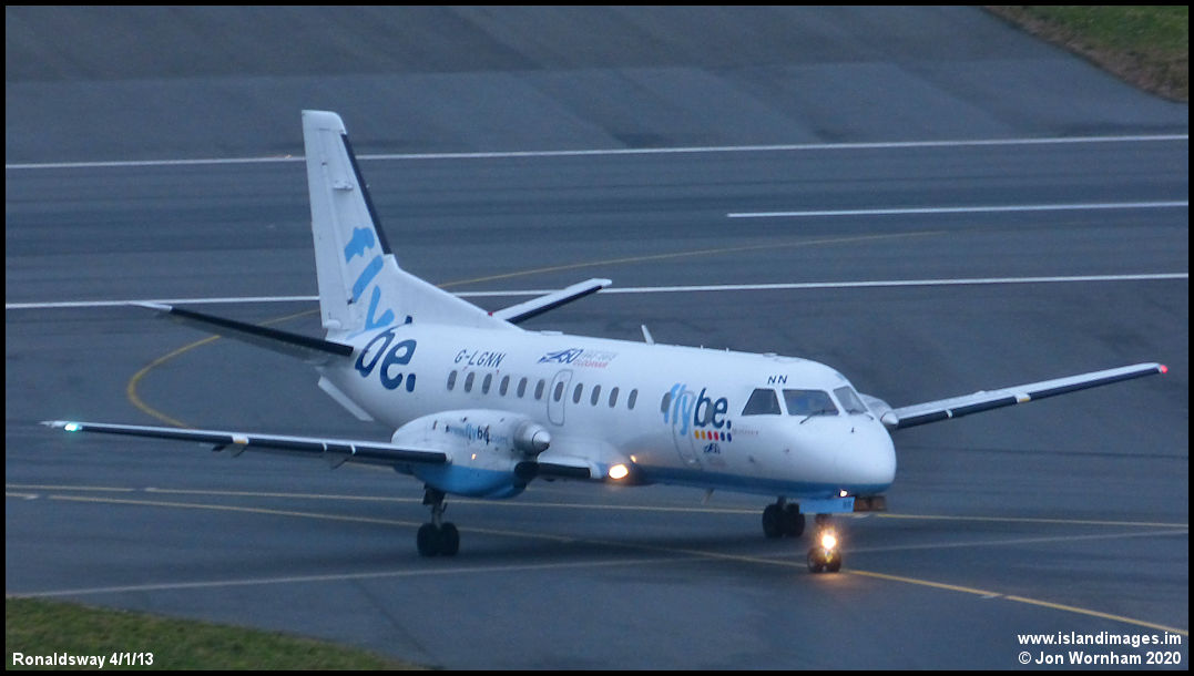 Loganair Saab 340B G-LGNN taxies in after arriving from Glasgow in January 2013. Not many months later they announced that after the 2013 TT races they would be stopping all Isle of Man services.