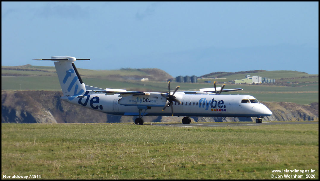 Q400 G-FLBA lines up for departure from the extended runway 26
