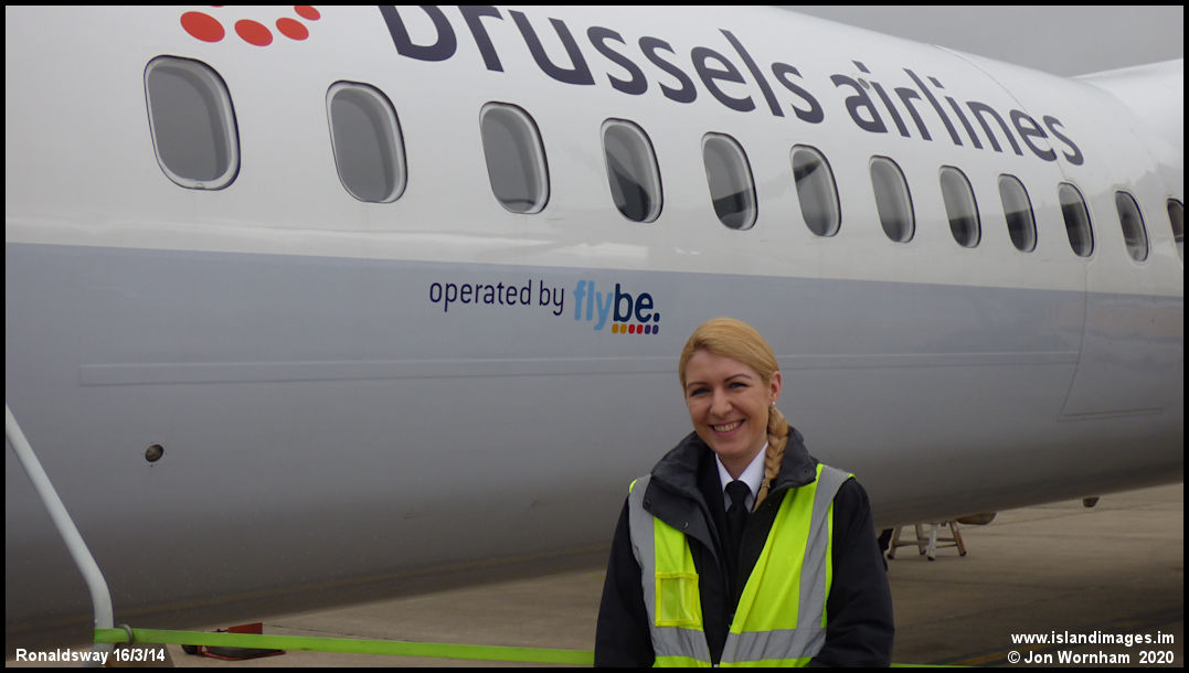 I regret not having more pictures of the Isle of Man based crews, but here is First Office (later Captain) Tara McKernan posing by Q400 G-ECOK on the day of her last flight from Ronaldsway before moving to their Belfast base.