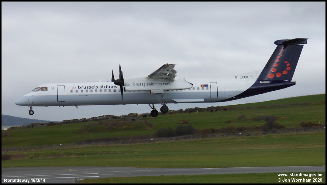 Q400 G-ECOK landing back at Ronaldsway after a trip to Manchester. It joined the fleet in 2009 and was still in service in 2020.