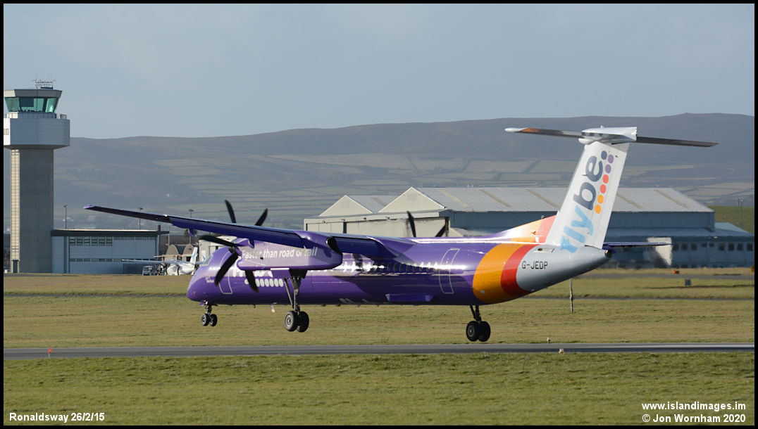 A nice demonstration of the 'one wing down' Dash8 crosswind landing technique by the crew of G-JEDP on runway 26. Joining the fleet in 2003 it was still in service in 2020.