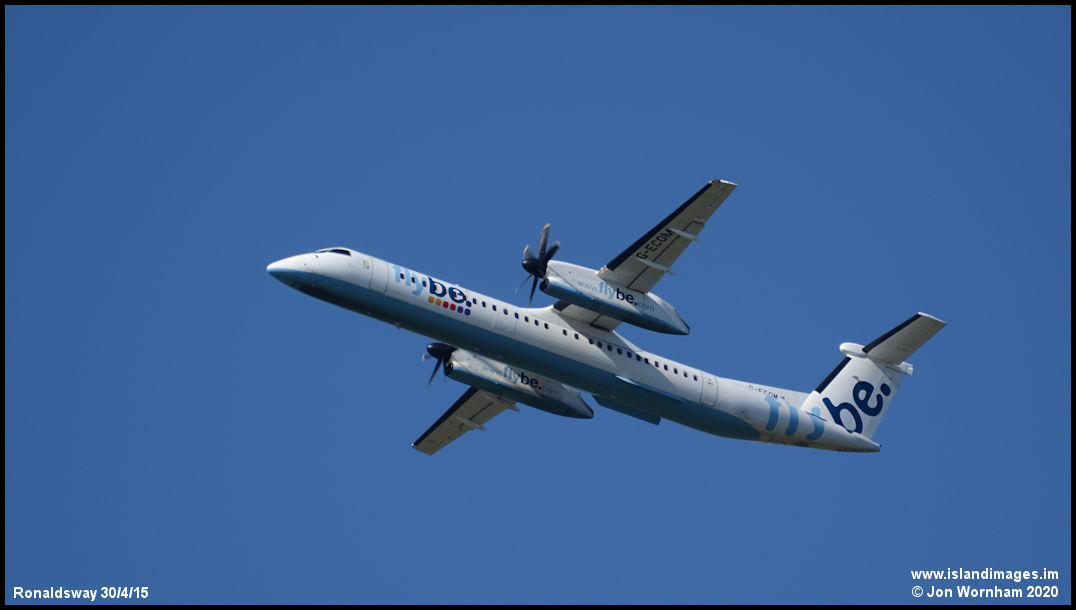 Q400 G-ECOM climbs away from Ronaldsway. New in 2008 and still in the fleet in 2020.