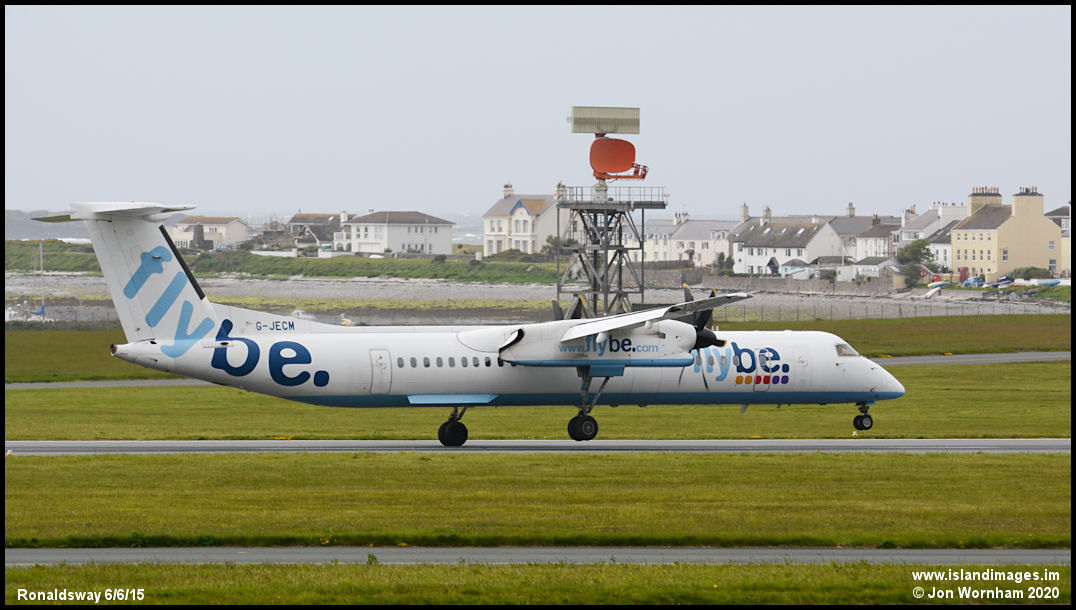 Another crosswing landing demonstration, by Q400 G-JECM on runway 26. Delivered in 2005 and still in service in 2020.