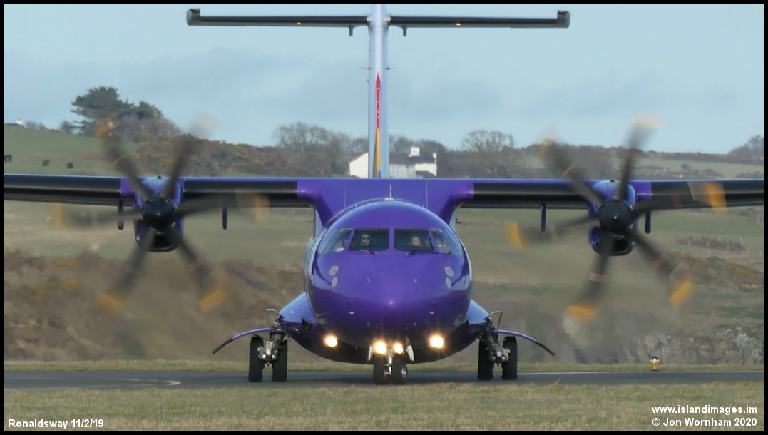 Head on Purple! Stobart Air's ATR72 EI-REM lining up on runway 26.
