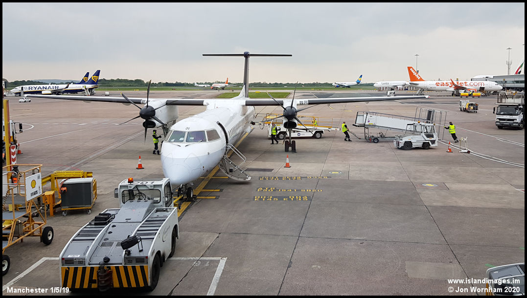 I was away from the island for all of April 2019, departing IOM - MAN on Stobart Air ATR72 EI-REM on the 25th March. For the return journey on the first of May it was FlyBe Q400 G-ECOI in basic Brussels Airlines colours.
