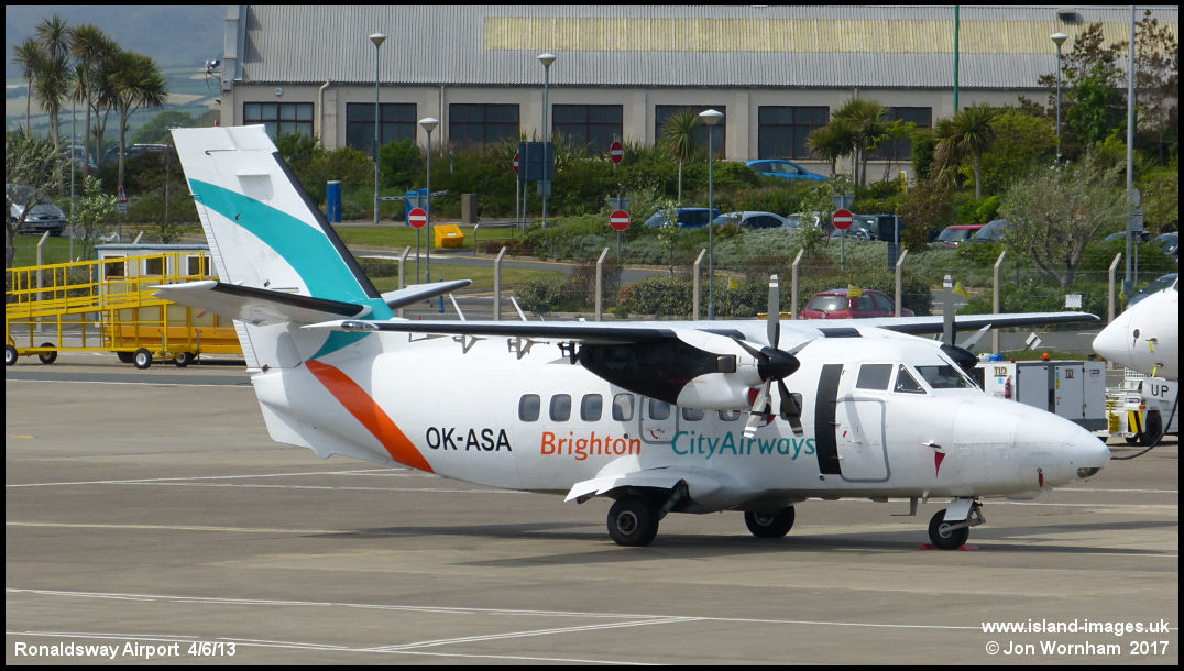An attempt to operate a Citywing style operation from Shoreham airport as Brighton Cityairways didn't last very long, but here is OK-ASA at Ronaldsway in appropriate colours. June 2013.