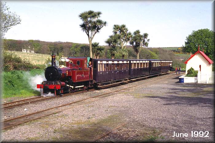 No 4 'Loch' pauses at Santon. The palm trees and wooden building are still